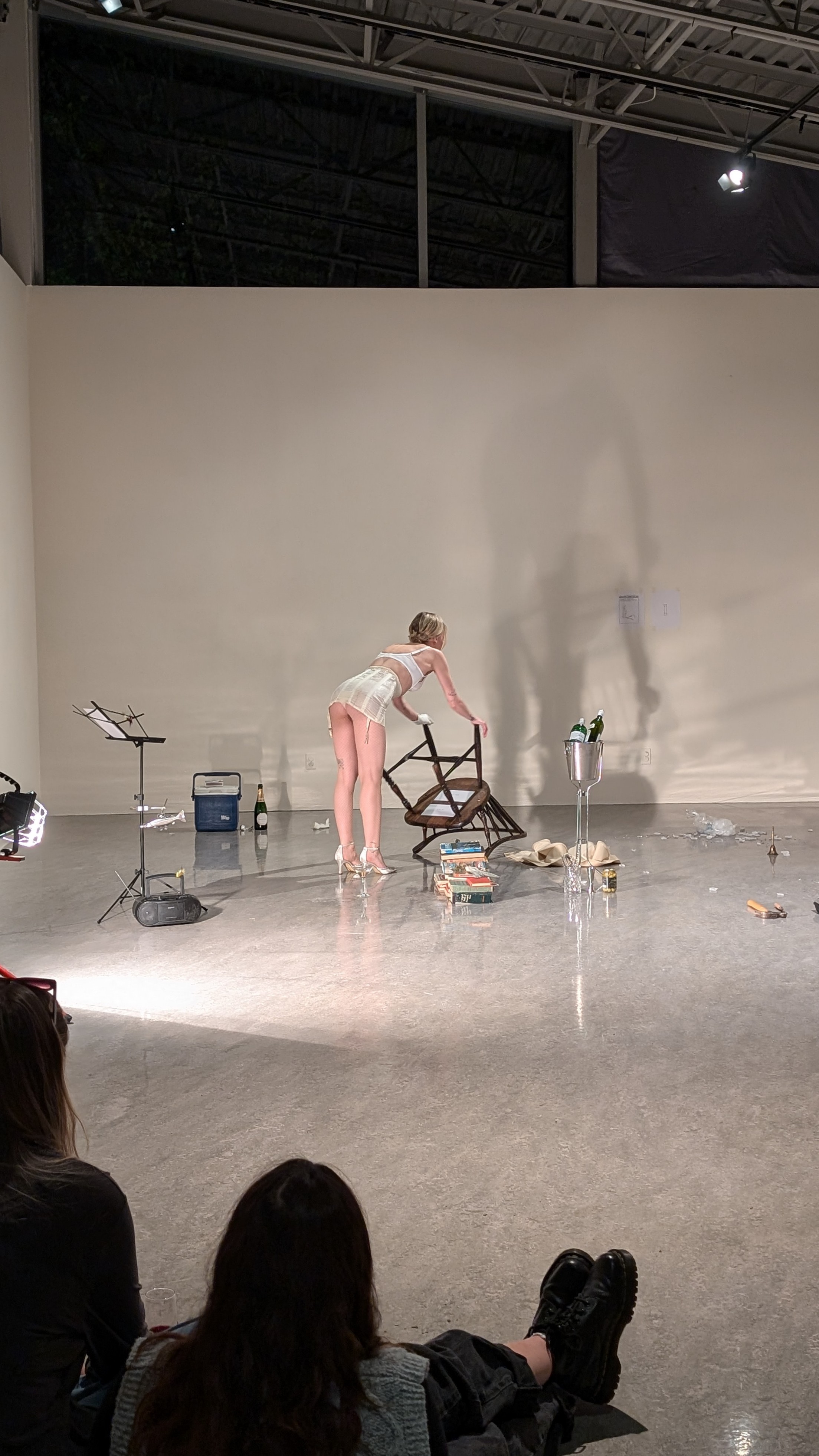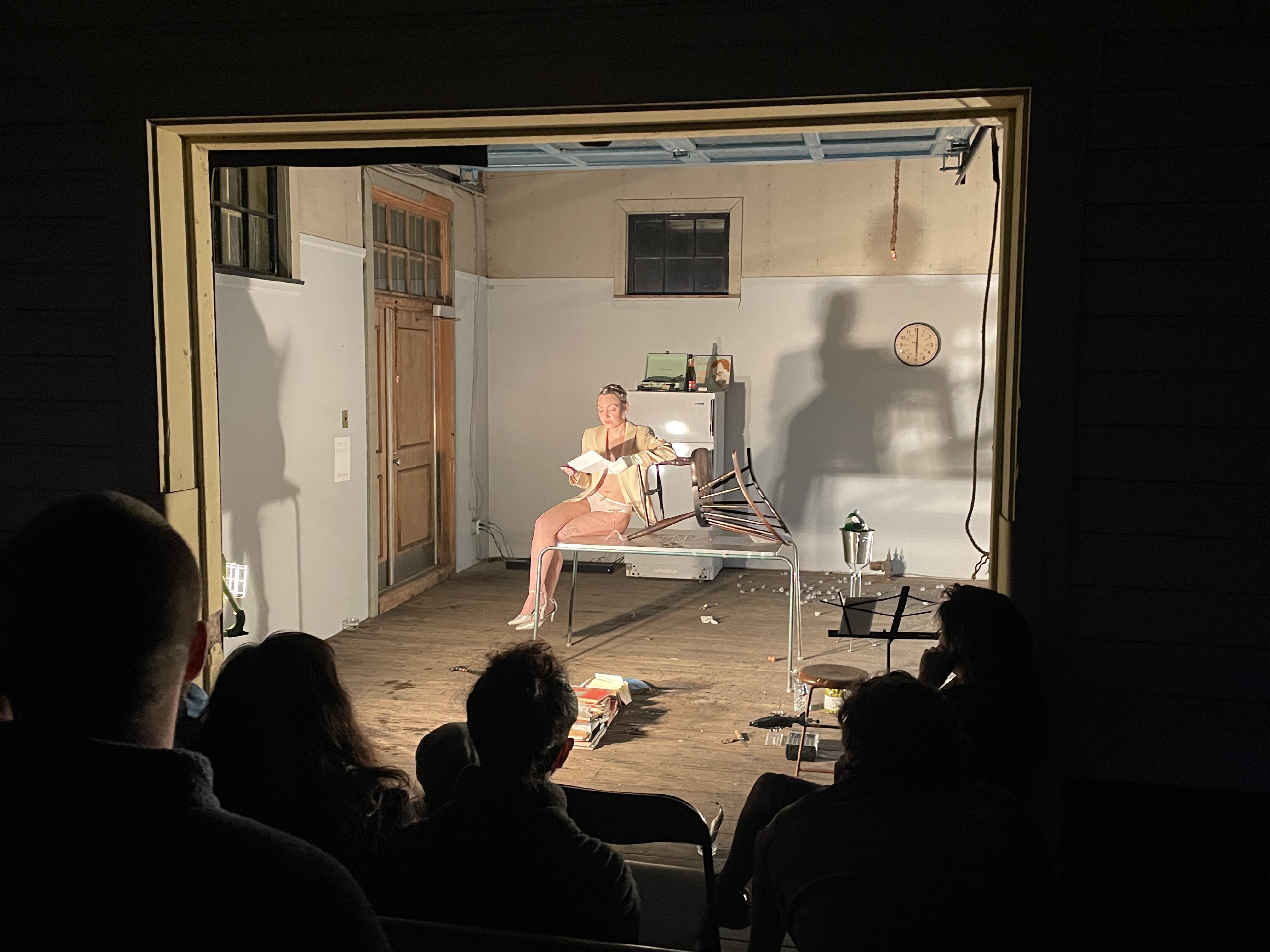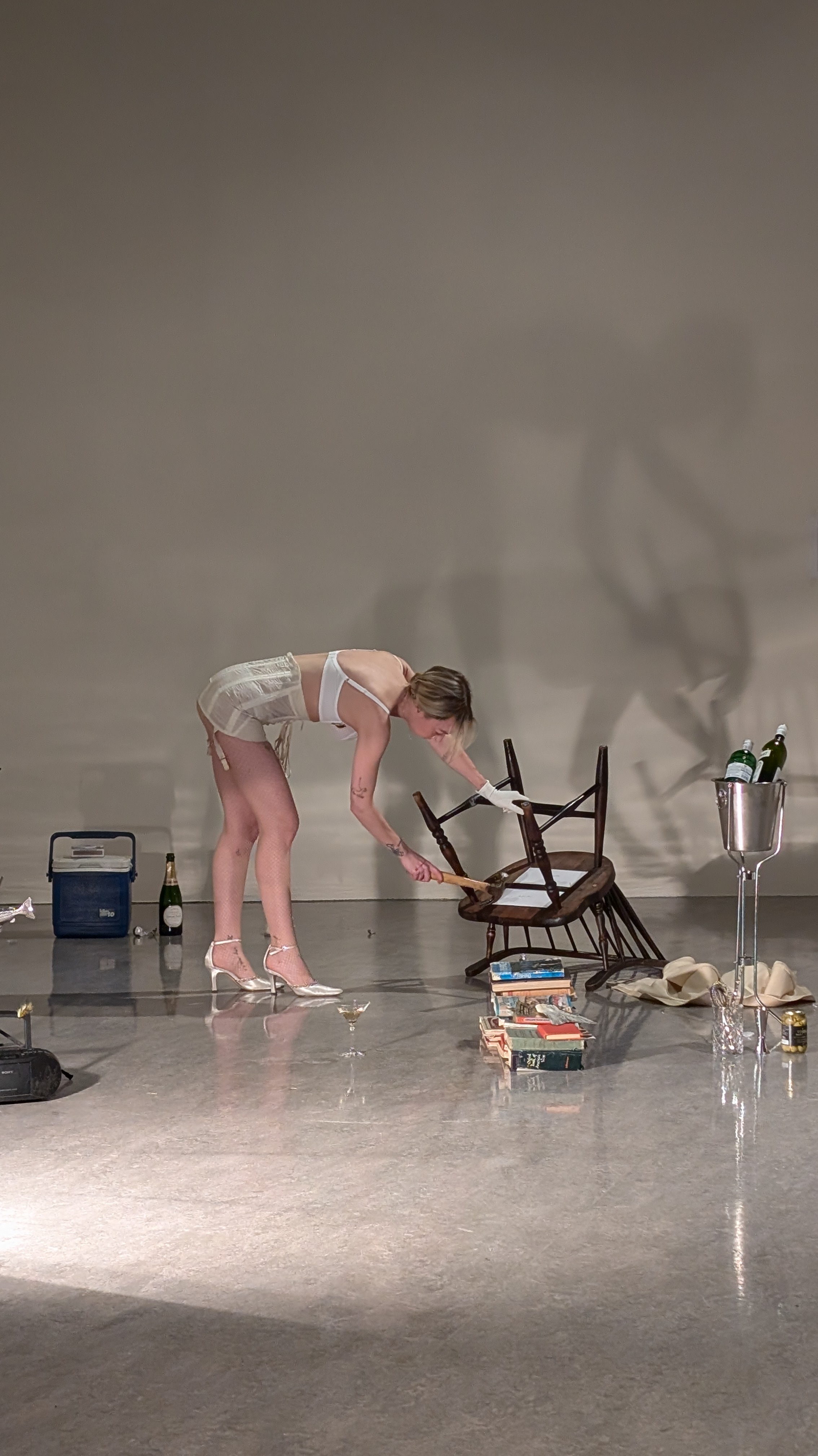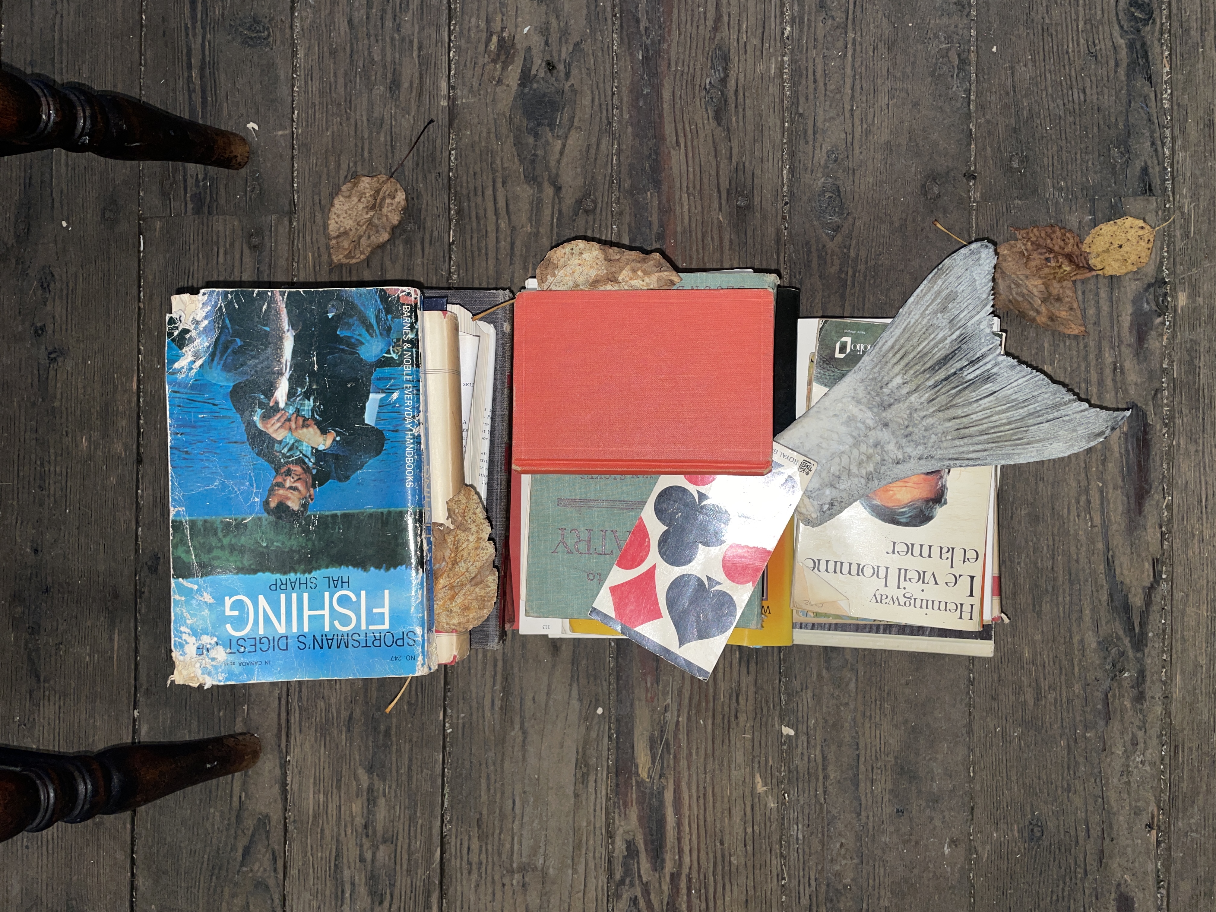 During the residency, the project evolved through encounters with local fishing guides, as well as scavenging trips to flea markets in search of clues, artefacts, photographs, books, old cassette tapes, and records. Reflection on femininity, aging, drinking, and longing intertwines with the creation of infused vodkas, the making of fishing flies, and movement research. These collected objects and experiences form the core of a performance that envelops the audience in a destabilizing, symbolically charged environment.