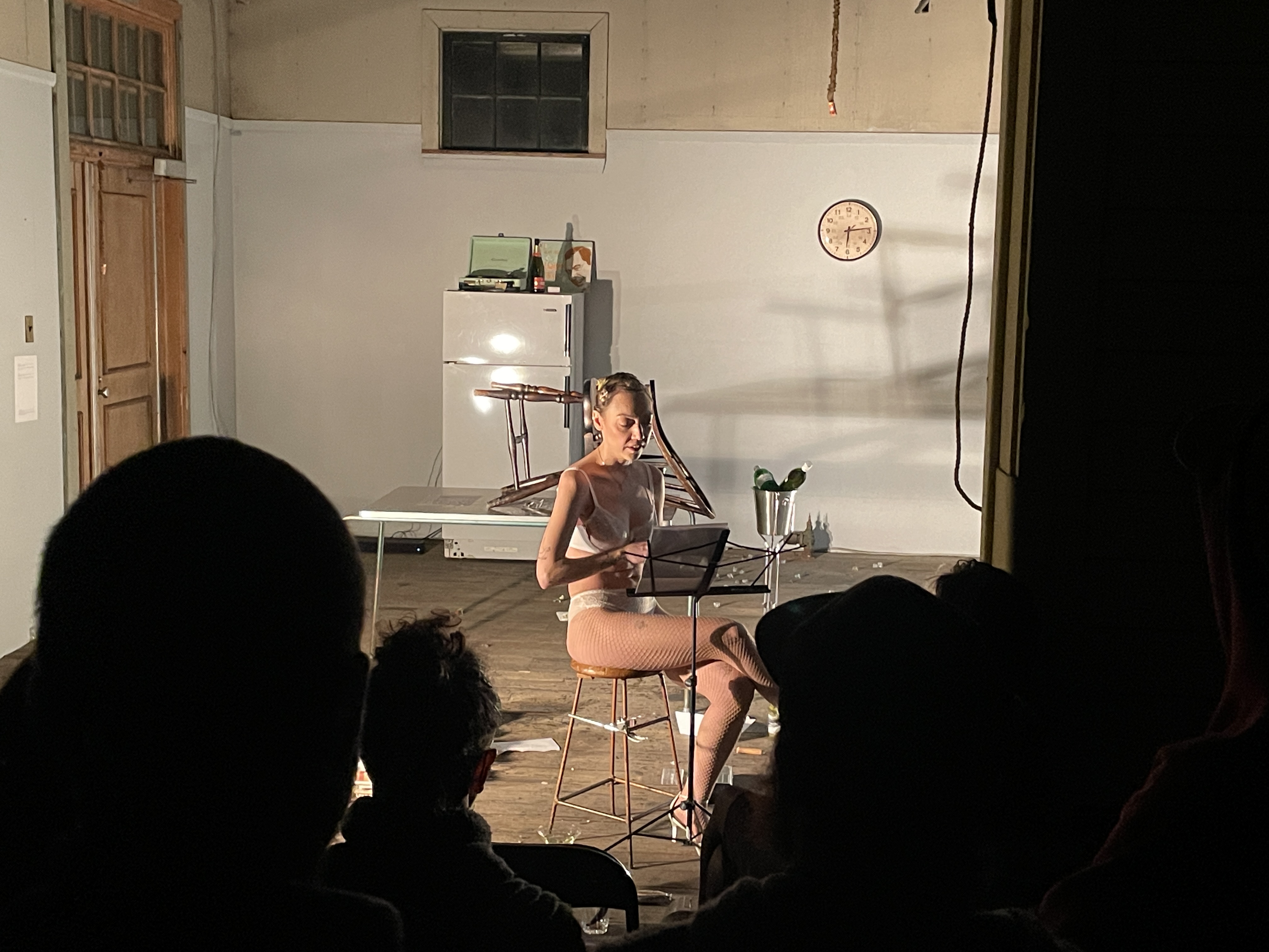 Queue de Poisson is a bilingual performance project developed during a nearly three-month residency at the Gare de Matapédia in Quebec. The work draws inspiration from a 1989 New York Times article recounting a fishing expedition on the Matapédia River—its water temperatures, currents, and the triumphs and failures of fly-fishing for salmon. This story becomes a springboard for an immersive exploration of desire, historical investigation, role-play, and seduction, all in dialogue with the culture of Gaspesian fishing.